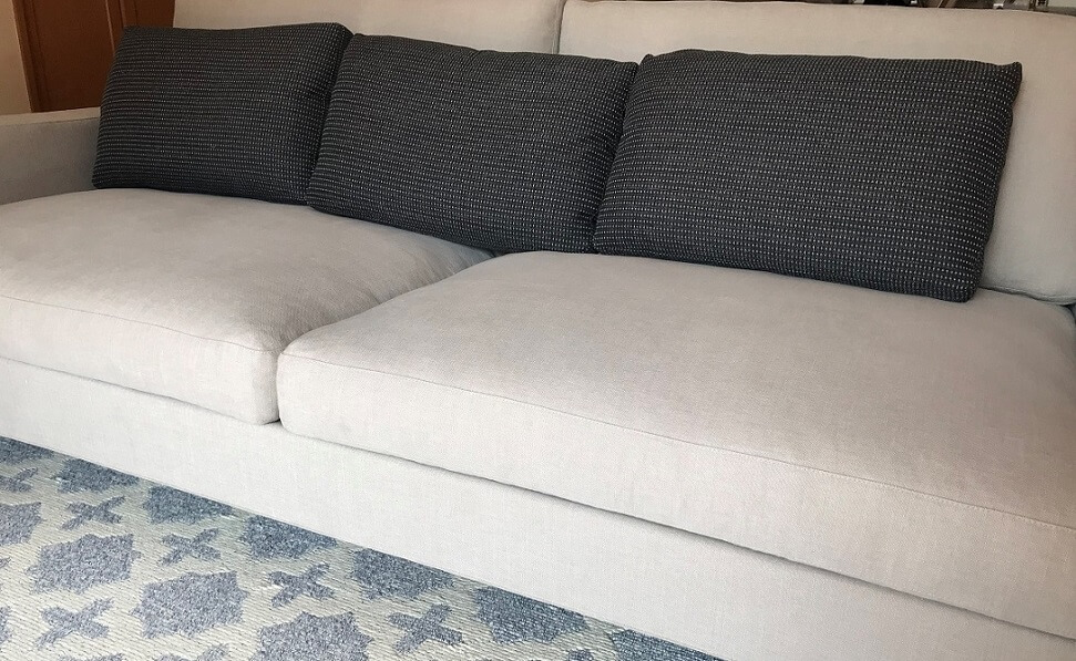 今お持ちのソファから、ご家族でゆっくり寛げる幅広いサイズへの買い替えをご希望とのことで、今回はボリューム感のあるGRVAのソファをお選び頂きました。幅は230㎝ある3人掛けのタイプです。