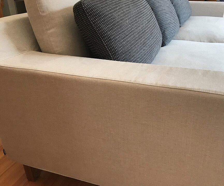 本体で選んで頂いた生地は、mixの展示ソファ生地と同じC-LA。こちらの生地は肌触りもよく、とても上品で優しい印象です。