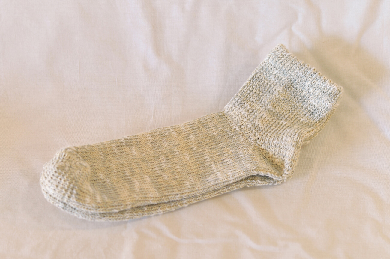 調極太の糸で肉厚にざっくり柔らかに編まれているのでクッション性があり、足の疲れを軽減してくれます。