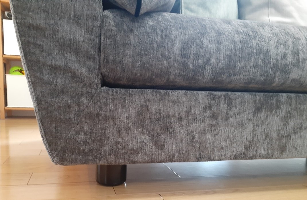 カバーファブリックには濃淡があり光の当たり具合で表情が変わるCUR-DG(ダークグレー)を本体・クッションに、上品で重厚感のあるベルベット生地のLRI-BK (ブラック)をパイピングにお選びいただきました。