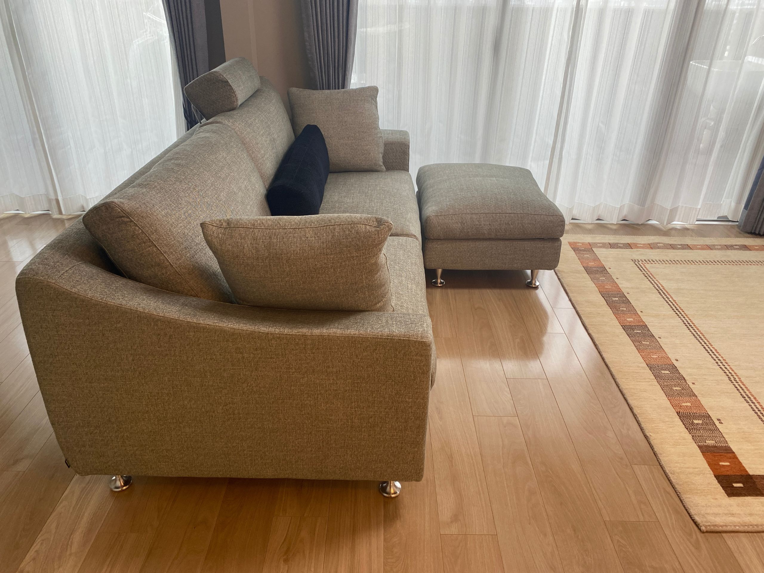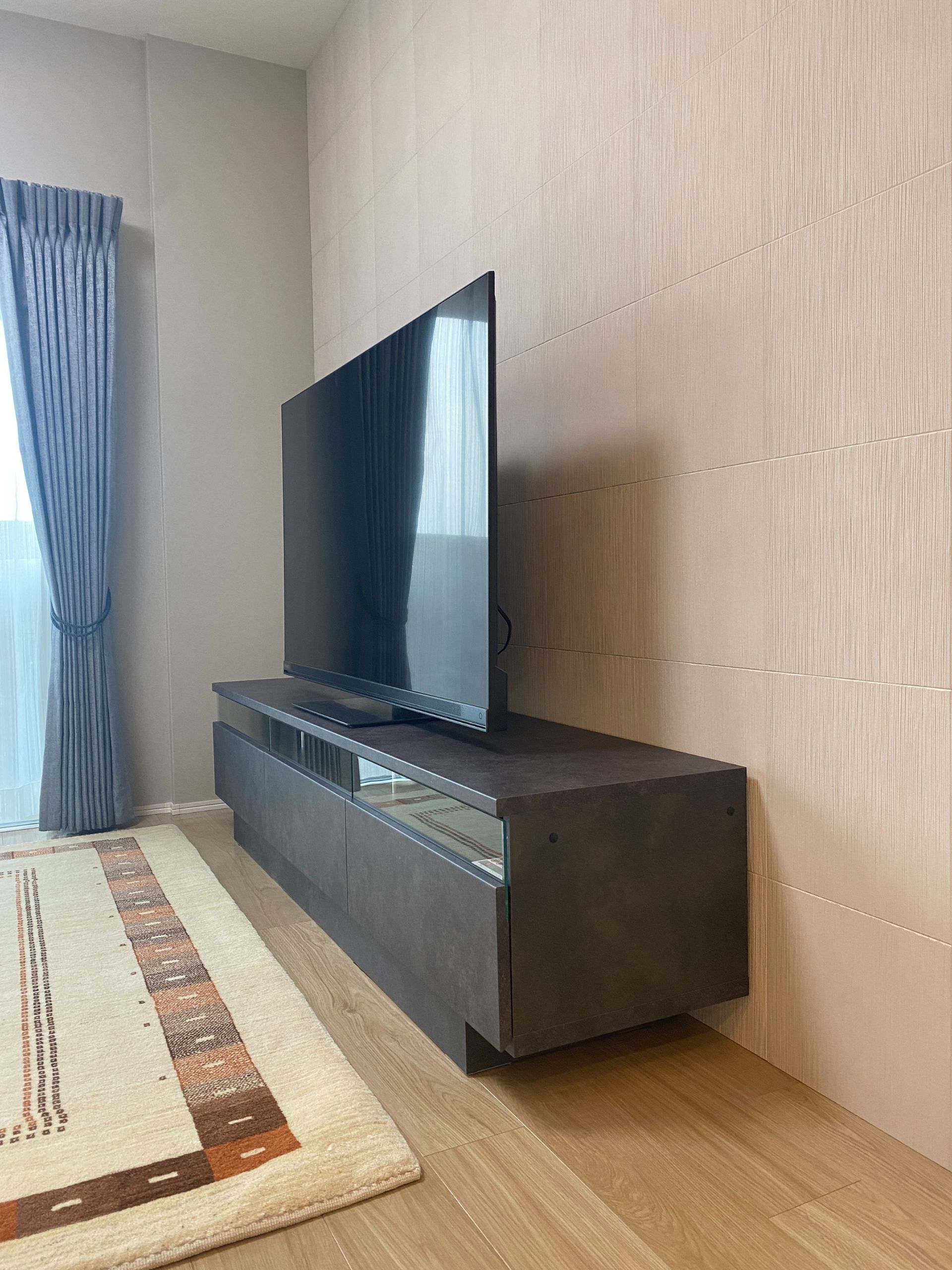 新居に合わせて家具一式(ソファ・ギャッベ・TV台・カーテンなど)をトータルでコーディネートさせていただきました。