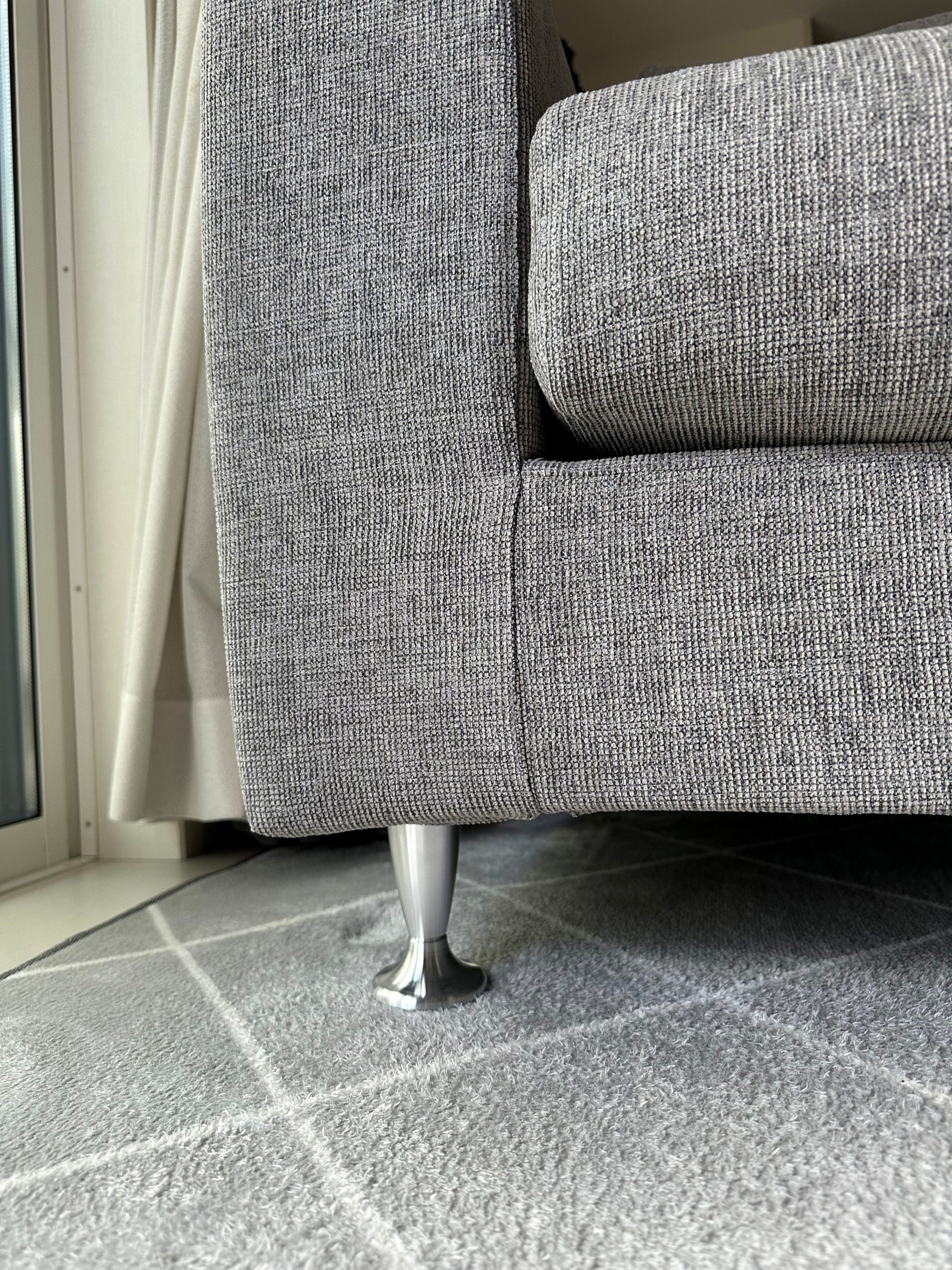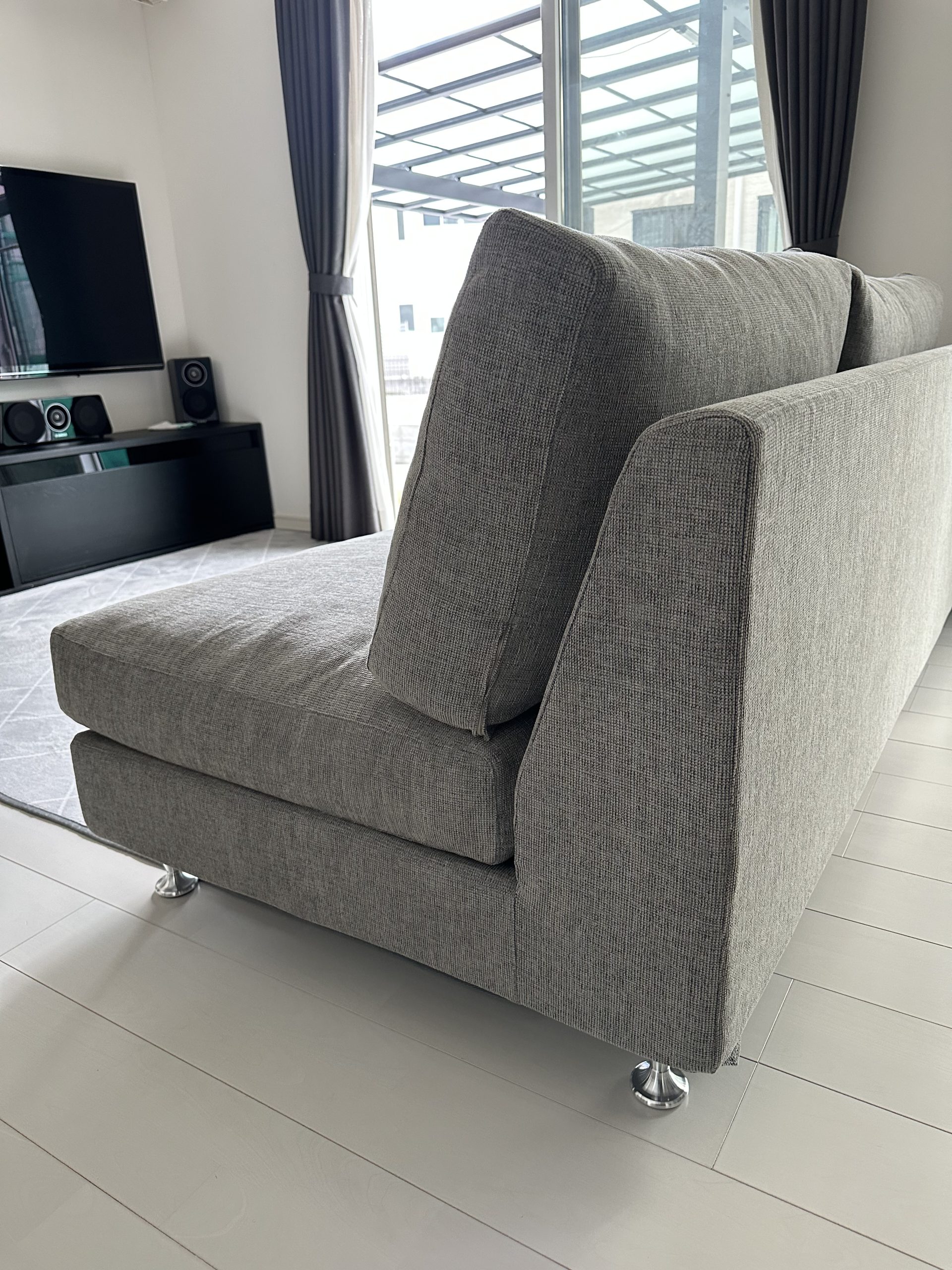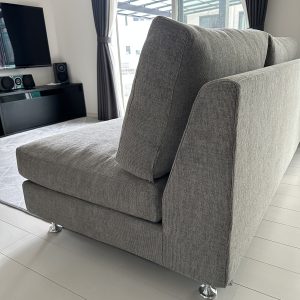 ファブリックは落ち着きのある雰囲気を感じさせるVRD-GR(グレー)を、脚はジュラルミン脚を選定いただきました。